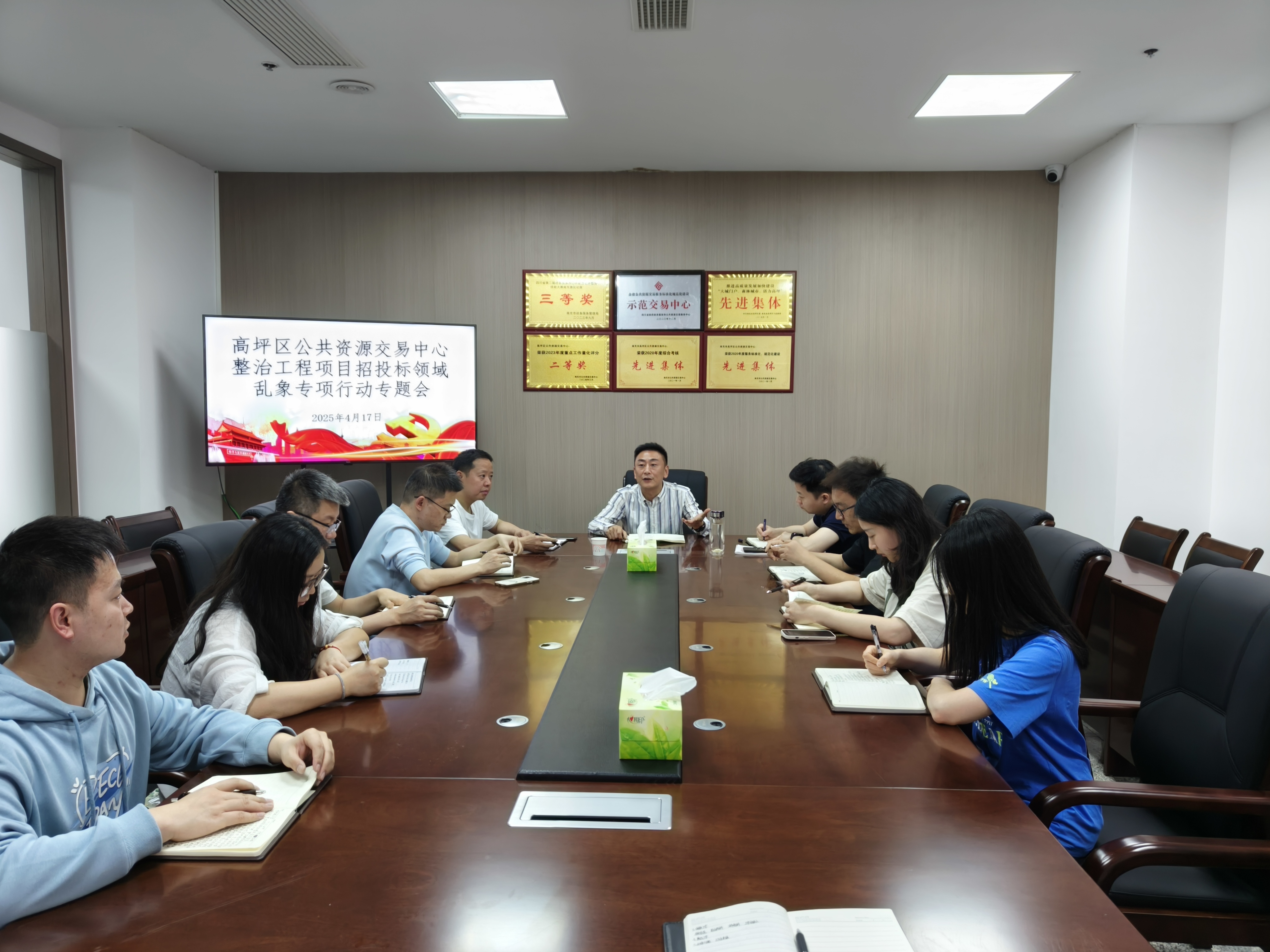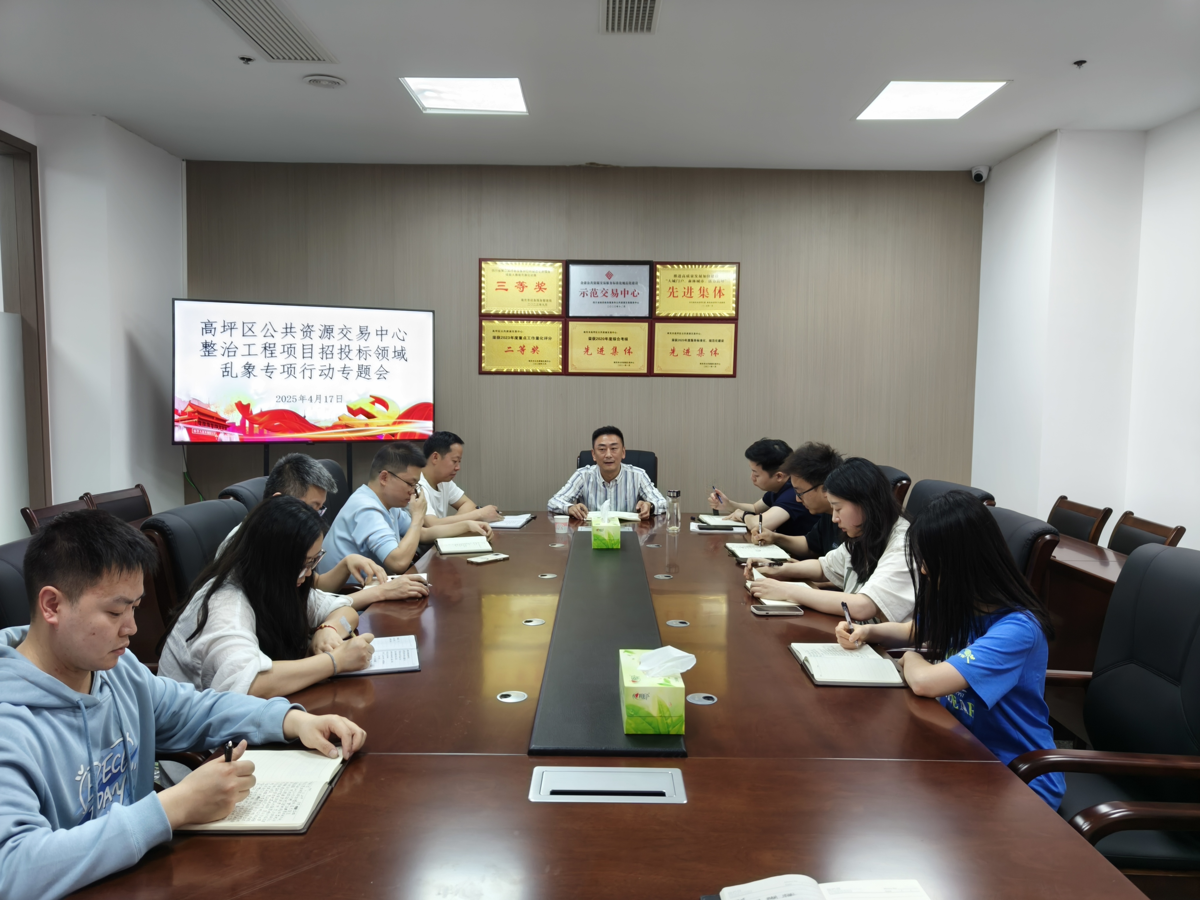 為深入貫徹落實(shí)中央、省市關(guān)于整治招投標(biāo)亂象的重要決策部署,進(jìn)一步規(guī)范招投標(biāo)市場秩序,營造公開、公平、公正的公共資源交易環(huán)境,4月17日上午,高坪區(qū)公共資源交易中心召開專題會議,全面部署工程項(xiàng)目招投標(biāo)亂象整治工作。會議由交易中心主任何紅兵主持,中心全體干部職工參加了會議。