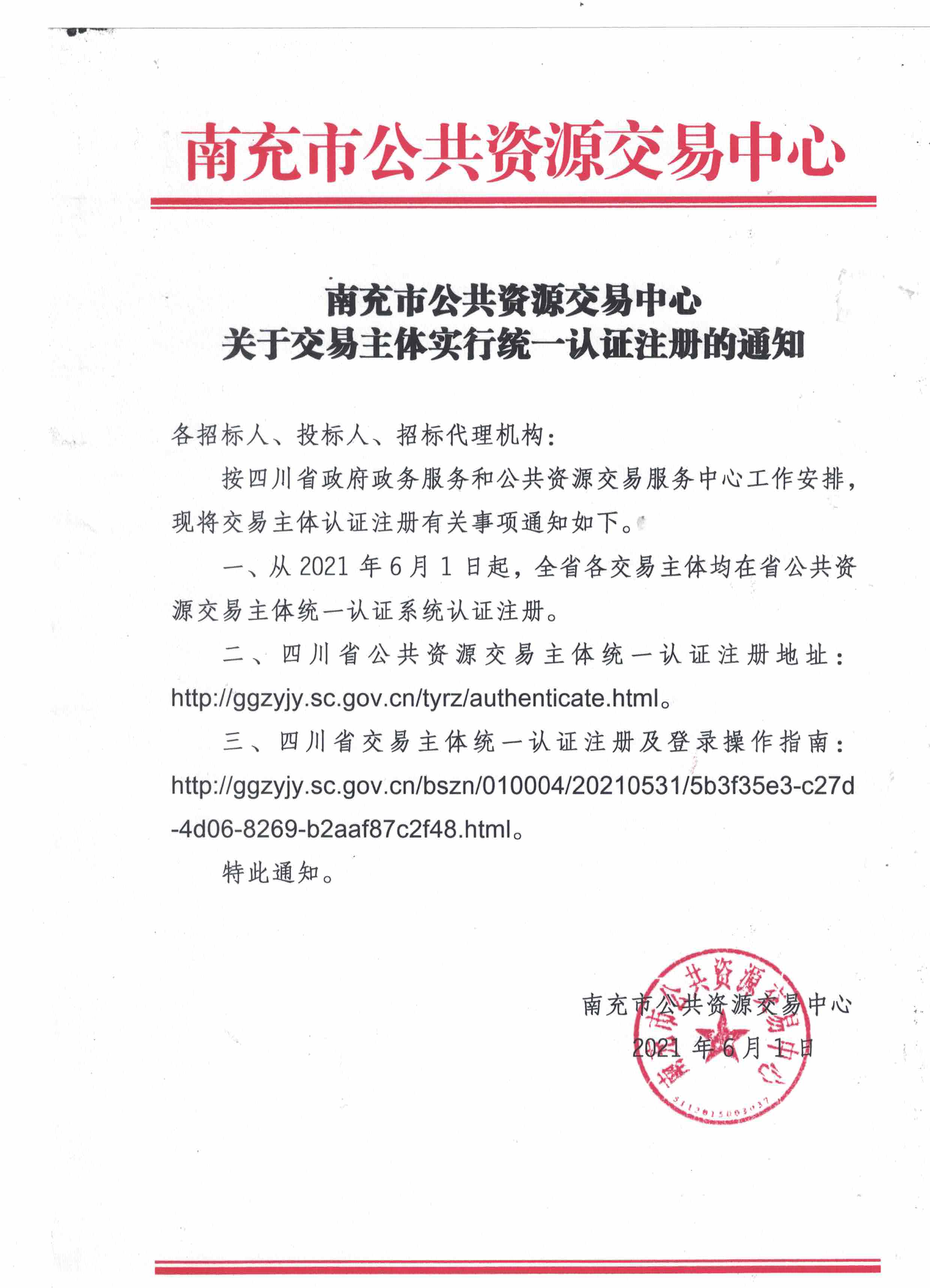 一、從2021年6月1日起,全省各交易主體均在省公共資源交易主體統(tǒng)一認證系統(tǒng)認證注冊。