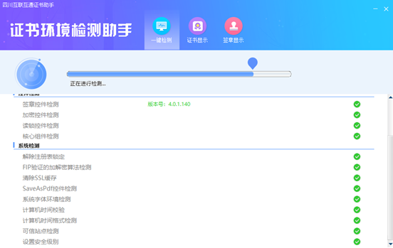 用戶(hù)可以點(diǎn)擊“立即檢測(cè)”按鈕,選擇證書(shū),點(diǎn)擊“確定”按鈕,輸入口令,可以檢測(cè)該證書(shū)Key是否可以正常使用。