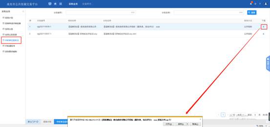 1、菜單中,點(diǎn)擊【采購(gòu)業(yè)務(wù)】—【中標(biāo)單位投標(biāo)文件下載】進(jìn)入該頁(yè)面,點(diǎn)擊【下載】按鈕,下載投標(biāo)文件,如下圖: