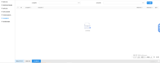 1、 菜單中,點(diǎn)擊【采購(gòu)業(yè)務(wù)】—【中標(biāo)通知書(shū)】進(jìn)入該頁(yè)面,如下圖: