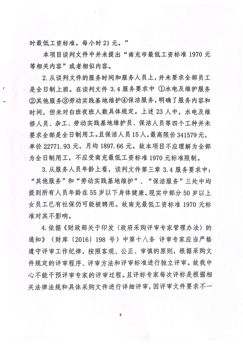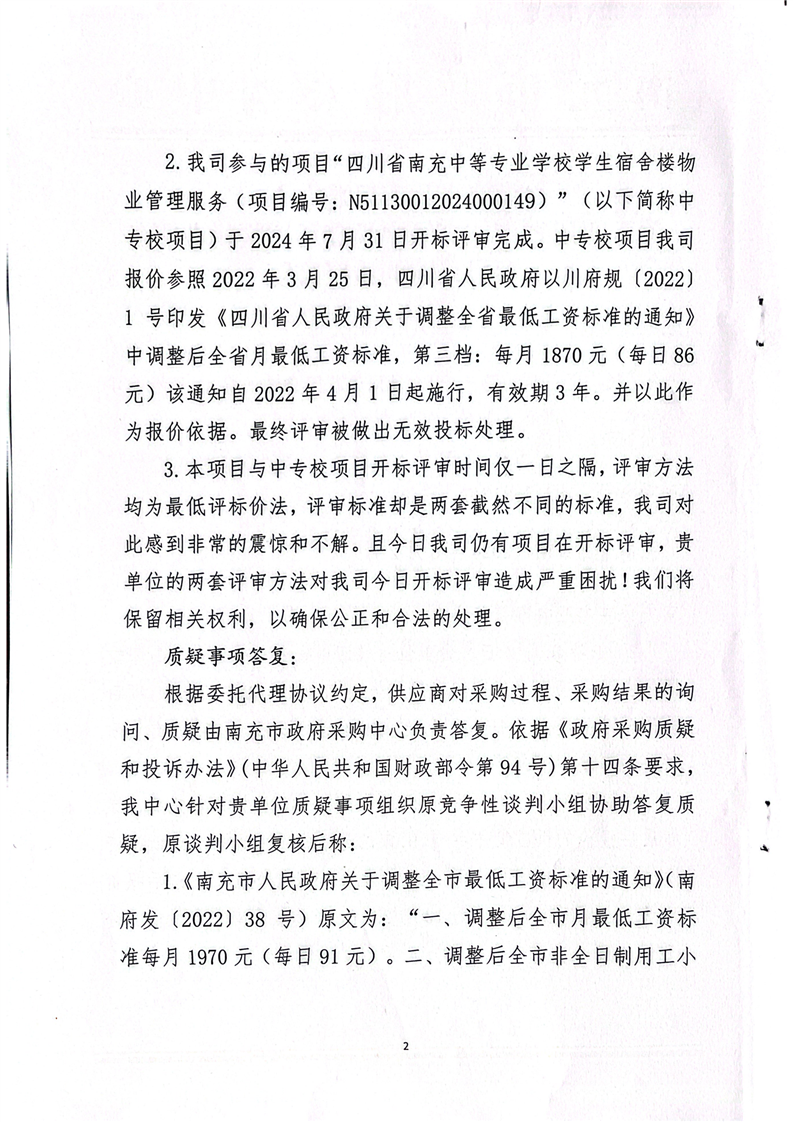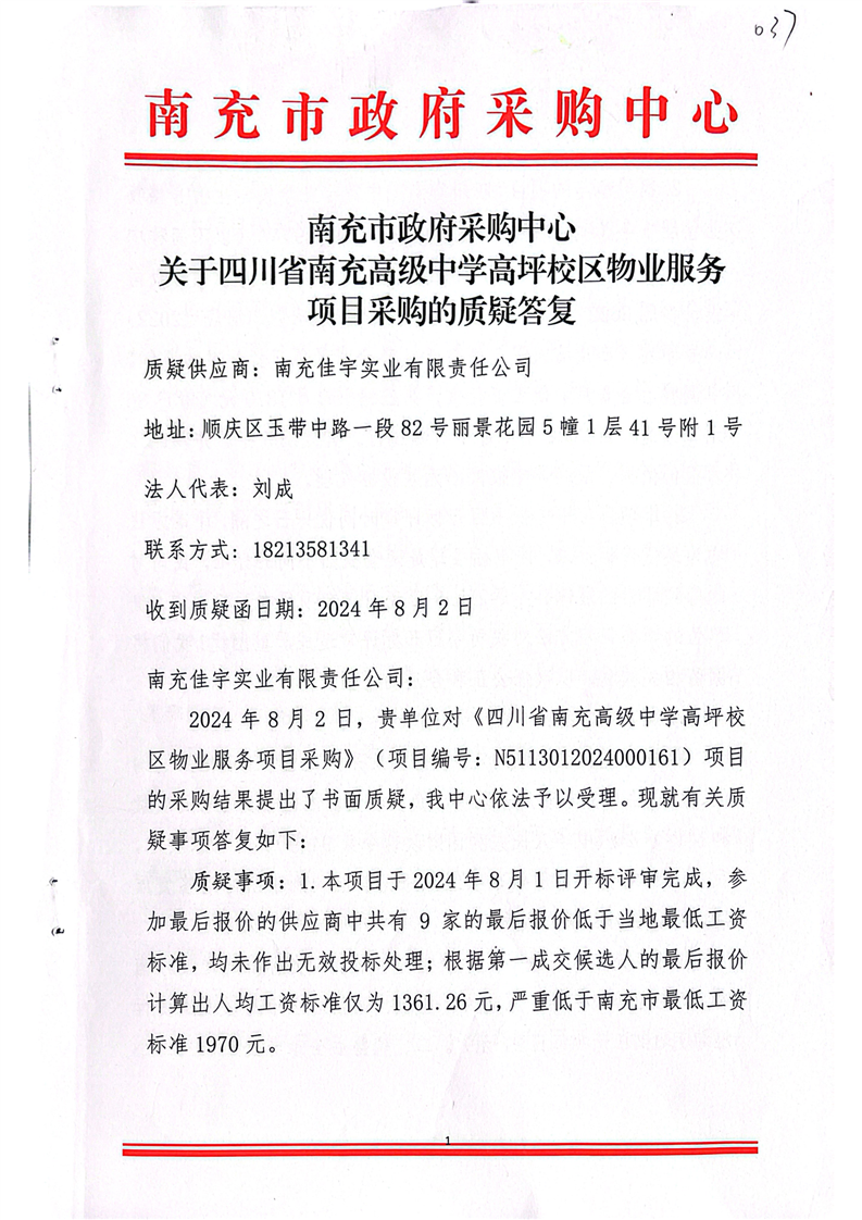 南充市政府采購(gòu)中心關(guān)于四川省南充高級(jí)中學(xué)高坪校區(qū)物業(yè)服務(wù)項(xiàng)目采購(gòu)的質(zhì)疑答復(fù)