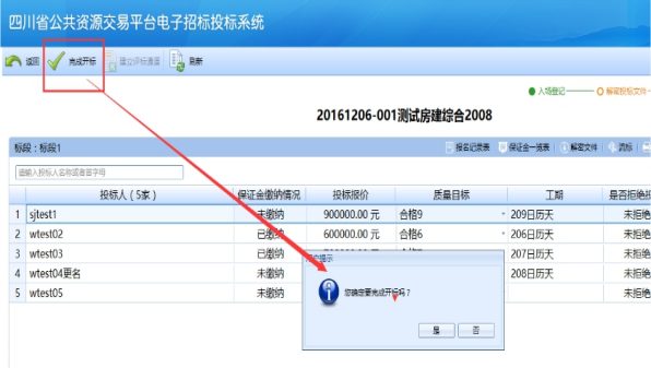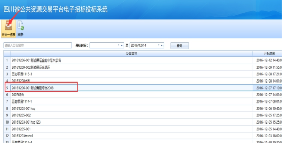 選擇要開標的項目,點擊“開標一覽表”: