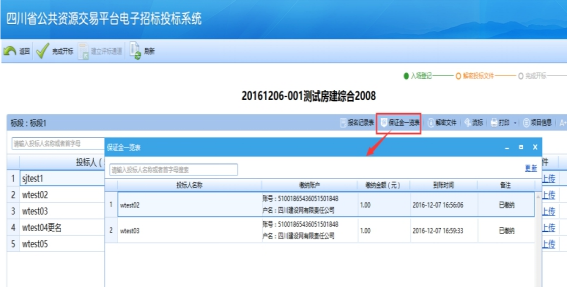 注:現(xiàn)場提供保函等類型的,請在開標一欄表中編輯投標人的保證金繳納情況。