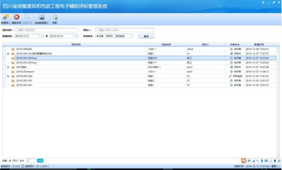 2.進入系統(tǒng)主界面,默認會顯示當天開標的項目: