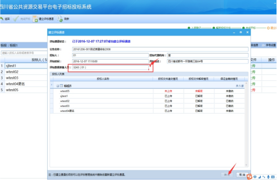 建立評標通道時,選擇評審數(shù)據(jù)準備人員: