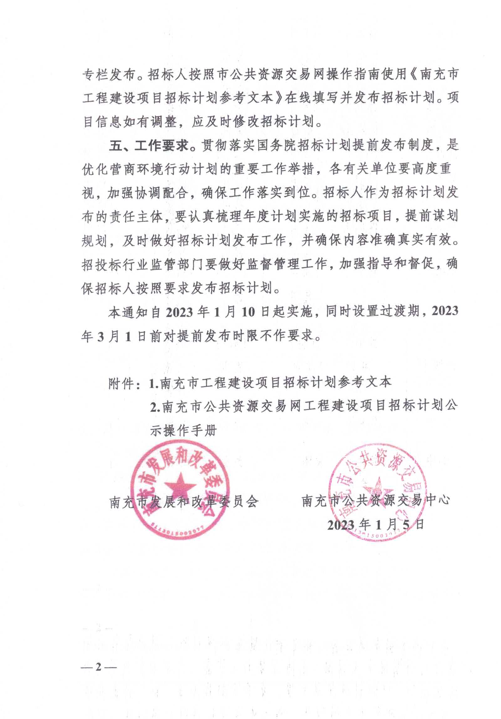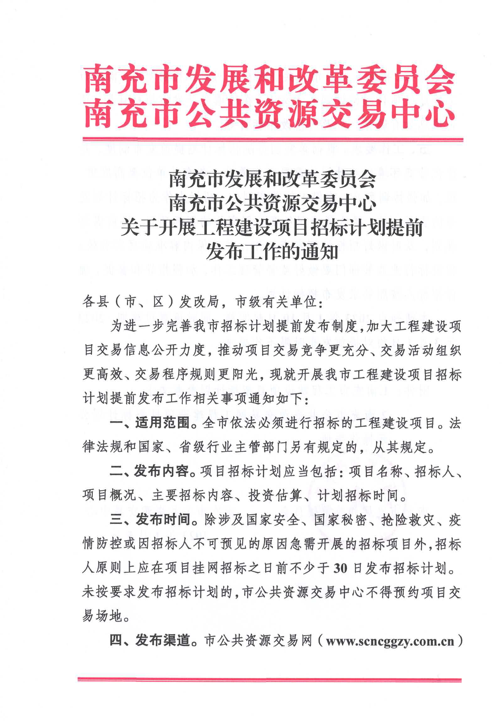 南充市發(fā)展和改革委員會、南充市公共資源交易中心關(guān)于開展工程建設(shè)項目招標(biāo)計劃提前發(fā)布工作的通知