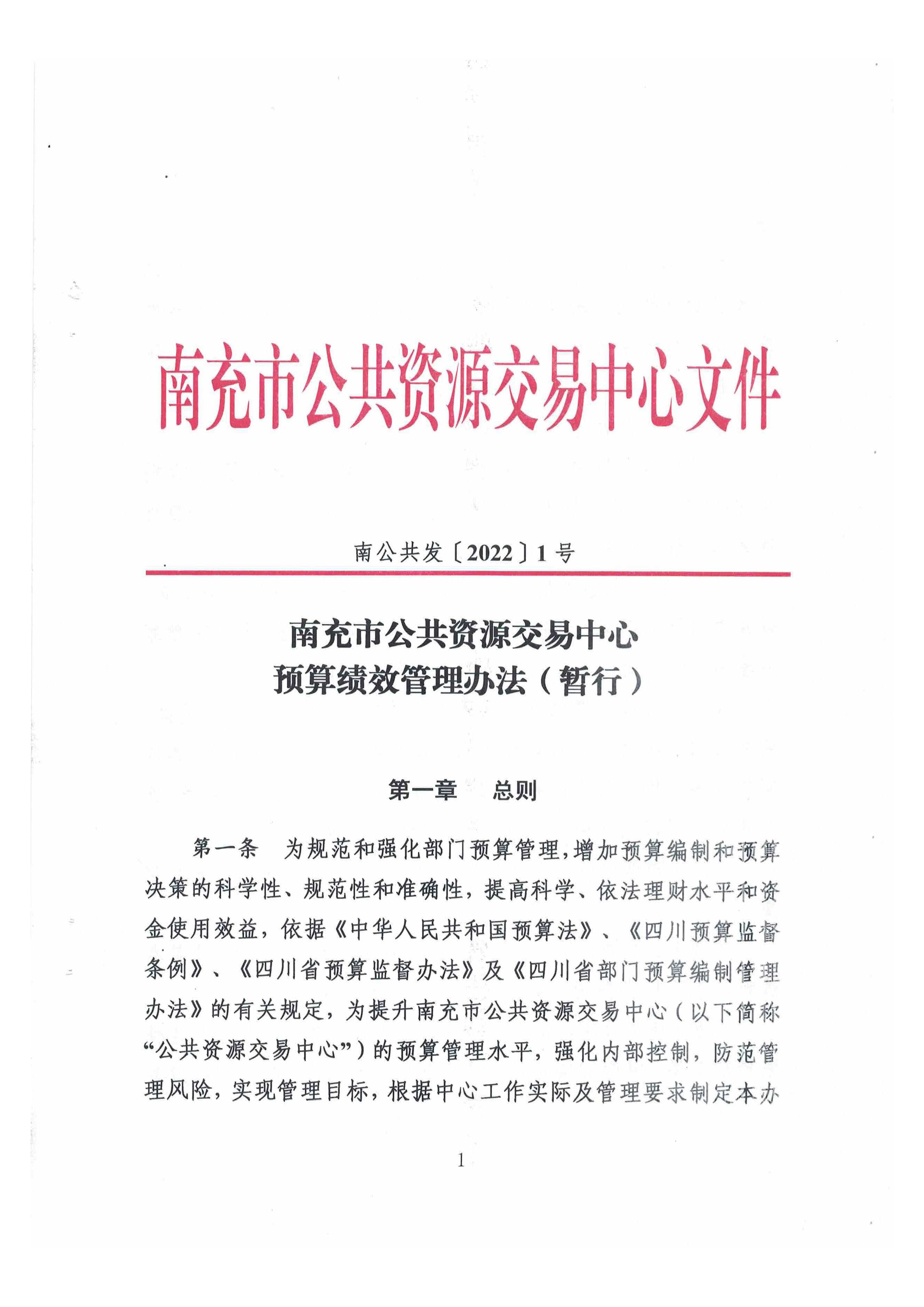 南充市公共資源交易中心預算績效管理辦法(暫行)